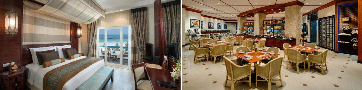 All 168 rooms and 14 suites of the Ajman Hotel overlook the clear blue waters of the Arabian Gulf. The spacious rooms and suites are well-appointed with modern Arabic décor. The hotel features ten food and beverage outlets and extensive leisure facilities. Ajman Hotel sits on one of the most beautiful white-sand beaches in the UAE.
