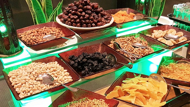 Dates and dry fruits are available on the tables for breaking fast, and the Day and Night Restaurant features special Ramadan table runners and Fanoos lanterns. There is an Oud player from 7:00pm to 10:00pm every evening, adding a charming touch to the evening. Arabic coffee will be served at the entrance of the restaurant and throughout the evening and Shisha is available at the additional cost of AED 35 with special Ramadan flavors which include strawberry and mint and rich cherry.