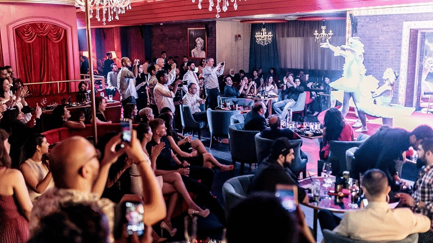 Live performances from the venue’s 15 internationals performers take place daily from 9pm and go on throughout the night. The artists wear a variety of dazzling costumes and perform various shows that take on a contemporary twist of Parisian burlesque and cabaret. The acts include live performances from a talented pianist, saxophonist, a stunning electric violinist and show-stopping dancers.