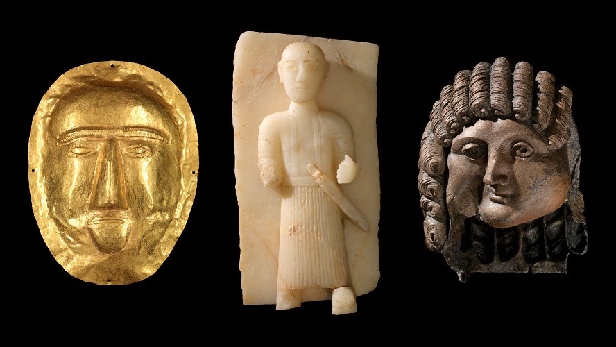 These will be displayed alongside significant artefacts from the Kingdom of Saudi Arabia, including outstanding funerary Neolithic stela, a 3rd-century BCE bronze statue head (loaned by the Department of Archaeology at King Saud University); a 1st-century BCE gold funerary mask from Eastern Province (loaned by the National Museum in Riyadh), 9th-century engraved steles (loaned by King Fahad National Library); 4th-millennium BCE Anthropomorphic stele (loaned by the National Museum in Riyadh); a door of the Kaaba dating to 1355 (loaned by the National Museum in Riyadh), and a key of the Kaaba (loaned by the Department of Islamic Art at the Musée du Louvre).