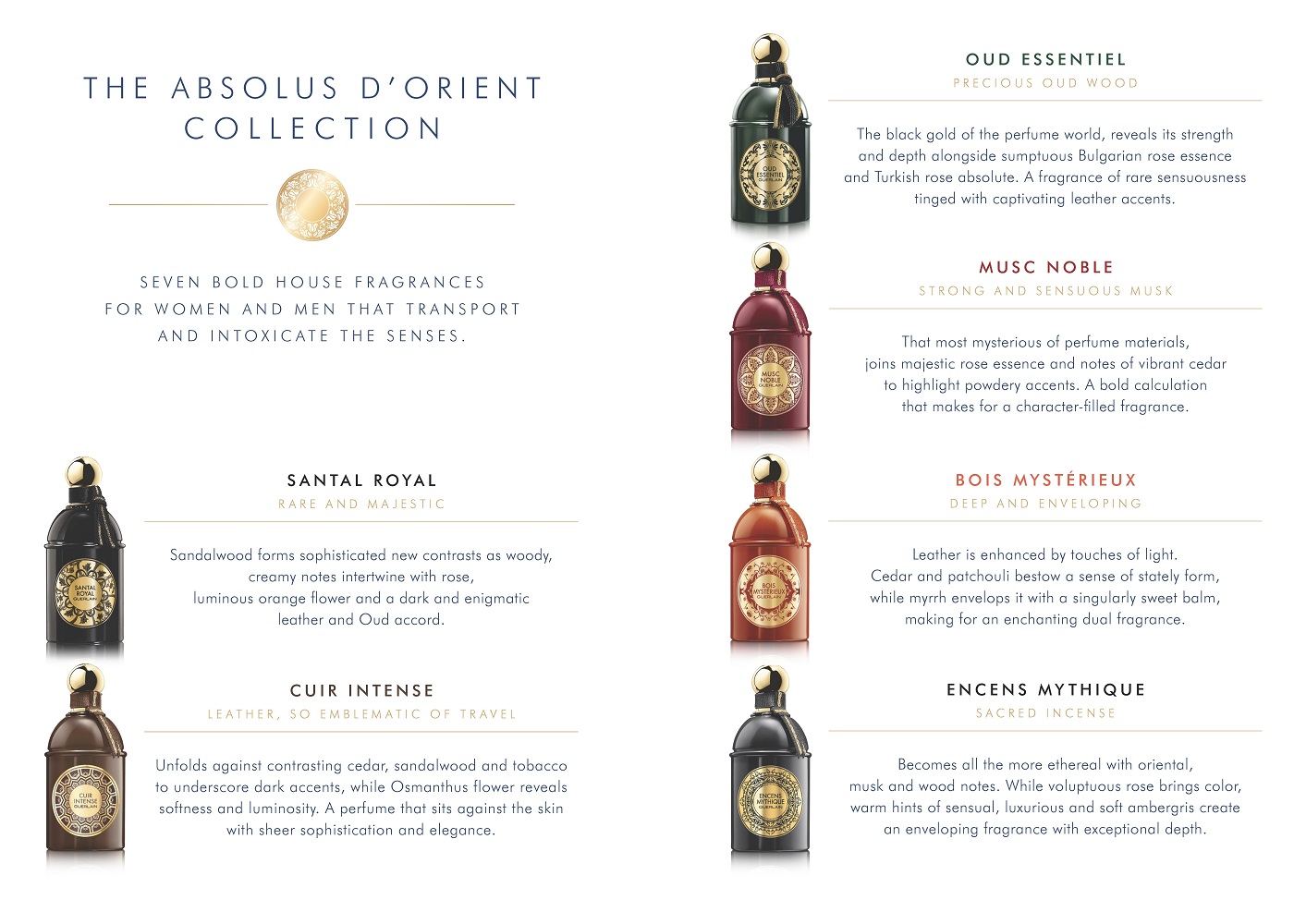 Blending ancestral tradition with modernity, the collection sees the Guerlain Perfumer submit his knowledge and timeless signature style to inspiration from the homeland of perfume, where olfactory gems abound.